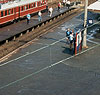 Am 18.07.1997wartet der ET 25 015 a/b im Bahnhof Egersund wegen Kreuzung und Überholung.
